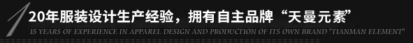 天曼擁有20年專業(yè)服裝生產(chǎn)經(jīng)驗(yàn),成功為國家電網(wǎng)、富士康、中石化中鐵十二局等企業(yè)定制服裝。 專業(yè)的技術(shù)團(tuán)隊(duì),提供服裝設(shè)計(jì)服務(wù) 擁有自助知識(shí)產(chǎn)權(quán)的服飾品牌"天曼元素"、"博士后"、"屹奧"。